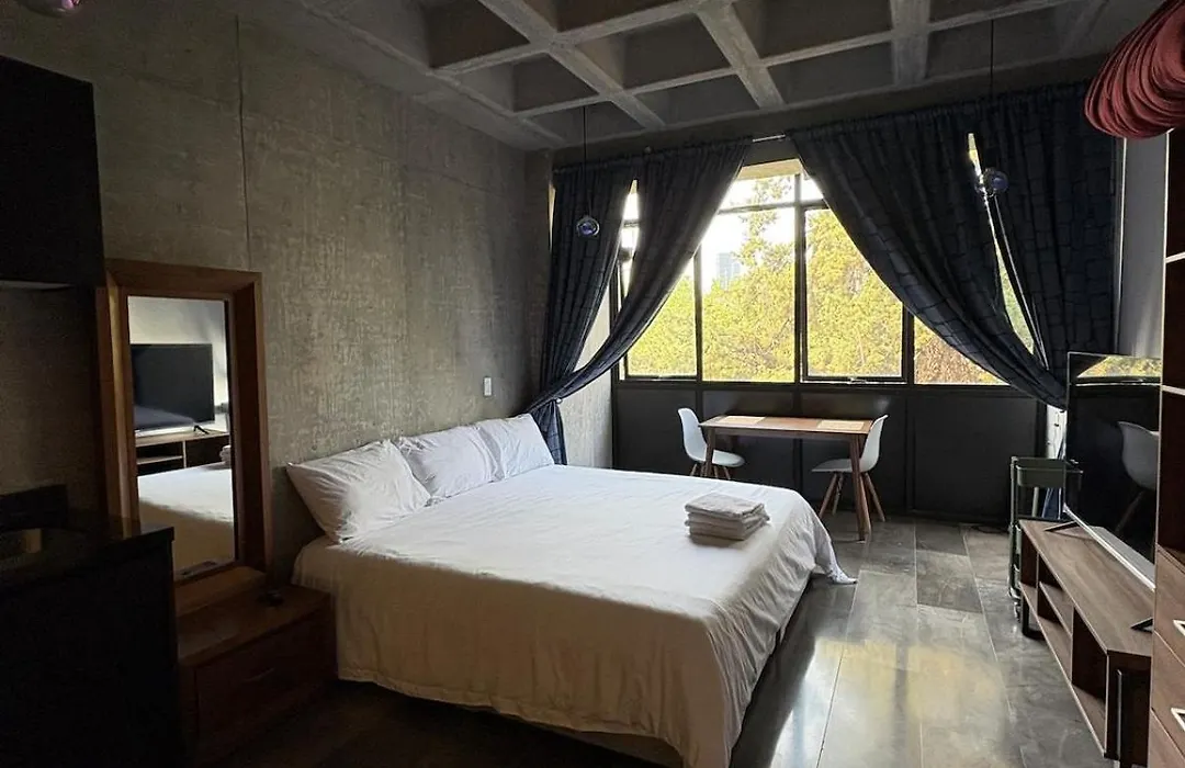 Das 1-Zimmer-Apartment Loft In The Heart Of Roma Norte Mexiko-Stadt verfügt über eine Terrasse und liegt in ungefähr 25 Gehminuten Entfernung vom Monumento a los Niños Héroes.